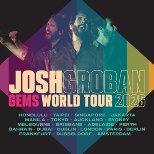 Jakarta, Indonesia – 18 November 2025 – Penyanyi, penulis lagu, aktor, dan filantropis peraih nominasi Tony®, EMMY®, dan lima kali GRAMMY®, Josh Groban, mengumumkan tur dunia pertamanya dalam 10 tahun terakhir bertajuk GEMS World Tour 2026. Tur yang akan menyambangi 21 kota ini akan dimulai di Honolulu dan kemudian singgah di Taipei, Singapura, Jakarta, Manila, Tokyo, Auckland, Sydney, Melbourne, Brisbane, Adelaide, Perth, Bahrain, Dubai, Dublin, London, Paris, Berlin, Frankfurt, dan Dusseldorf, sebelum ditutup di Amsterdam.